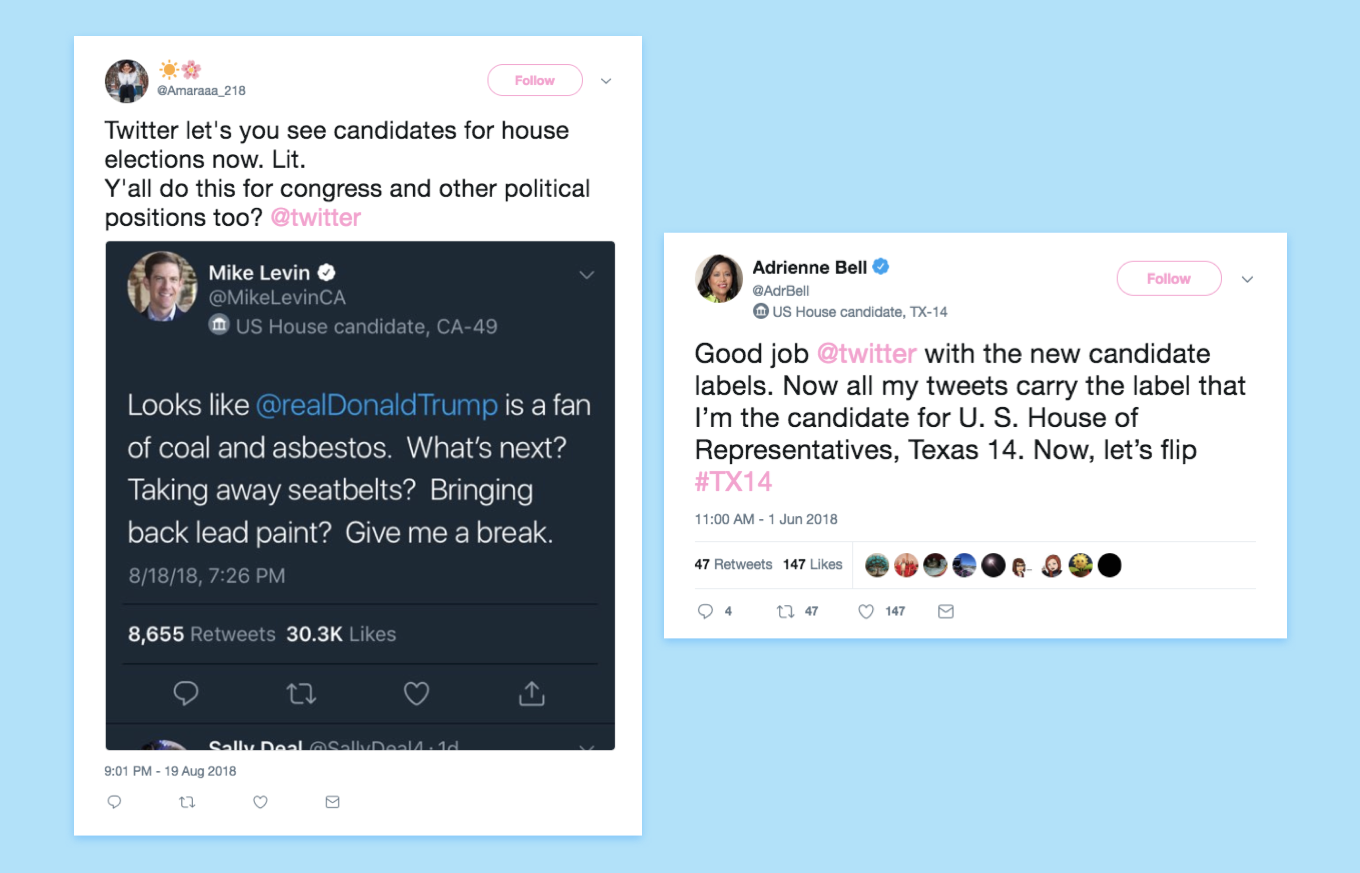 As the November 2018 midterm elections approached, many political conversations were happening on Twitter. We wanted to increase transparency for candidates running for office, as well as suppress bad actors creating fake accounts and impersonating candidates.