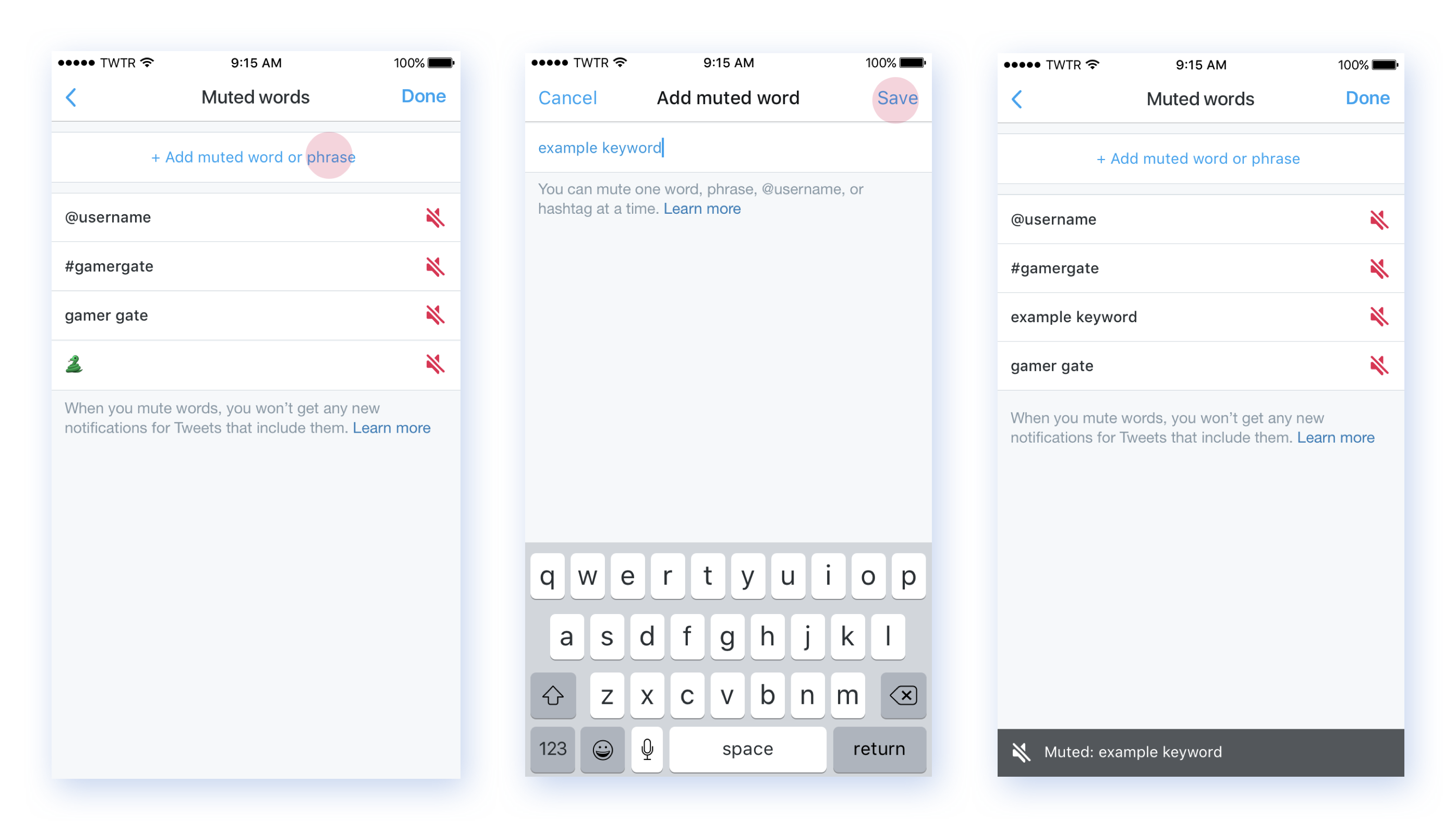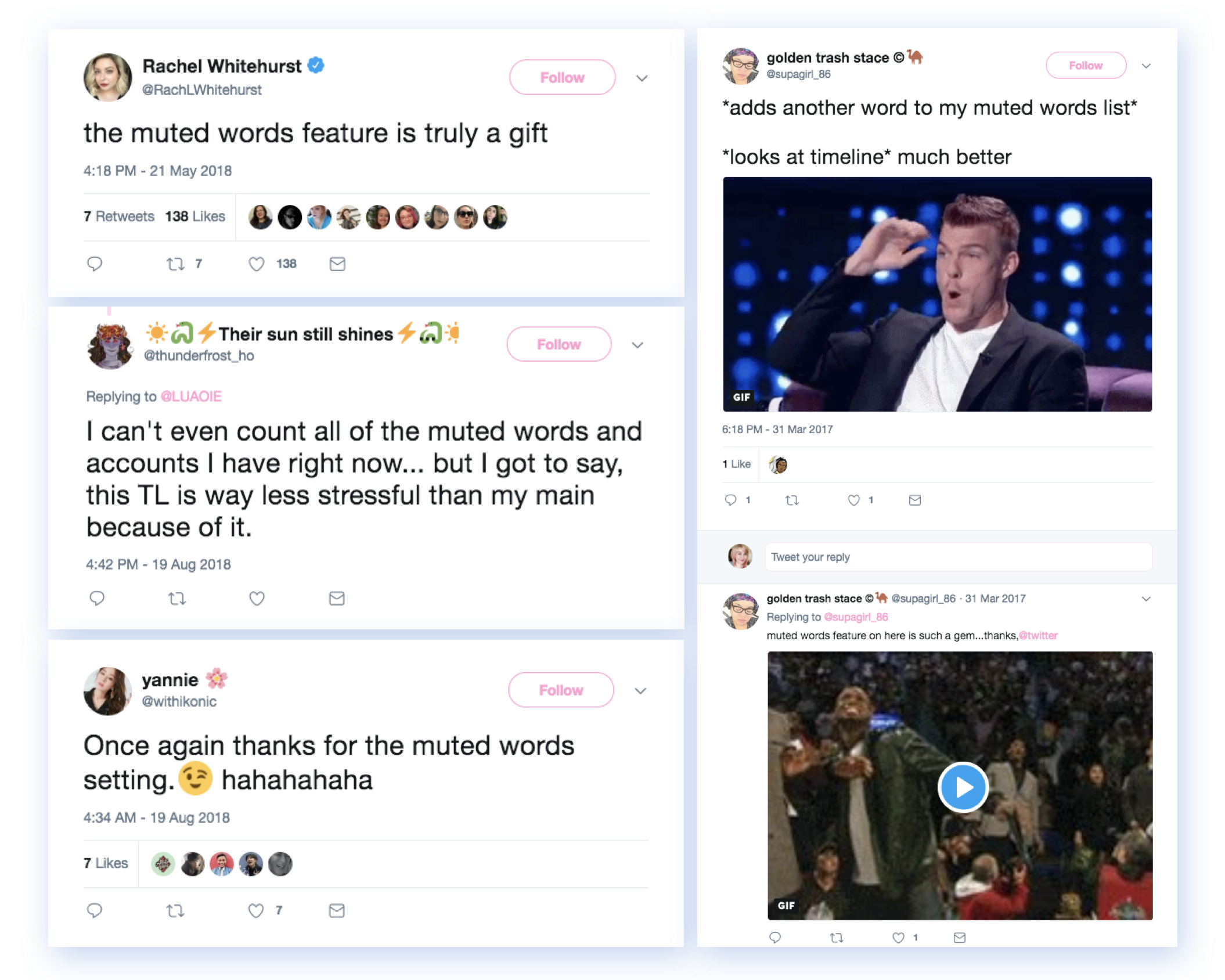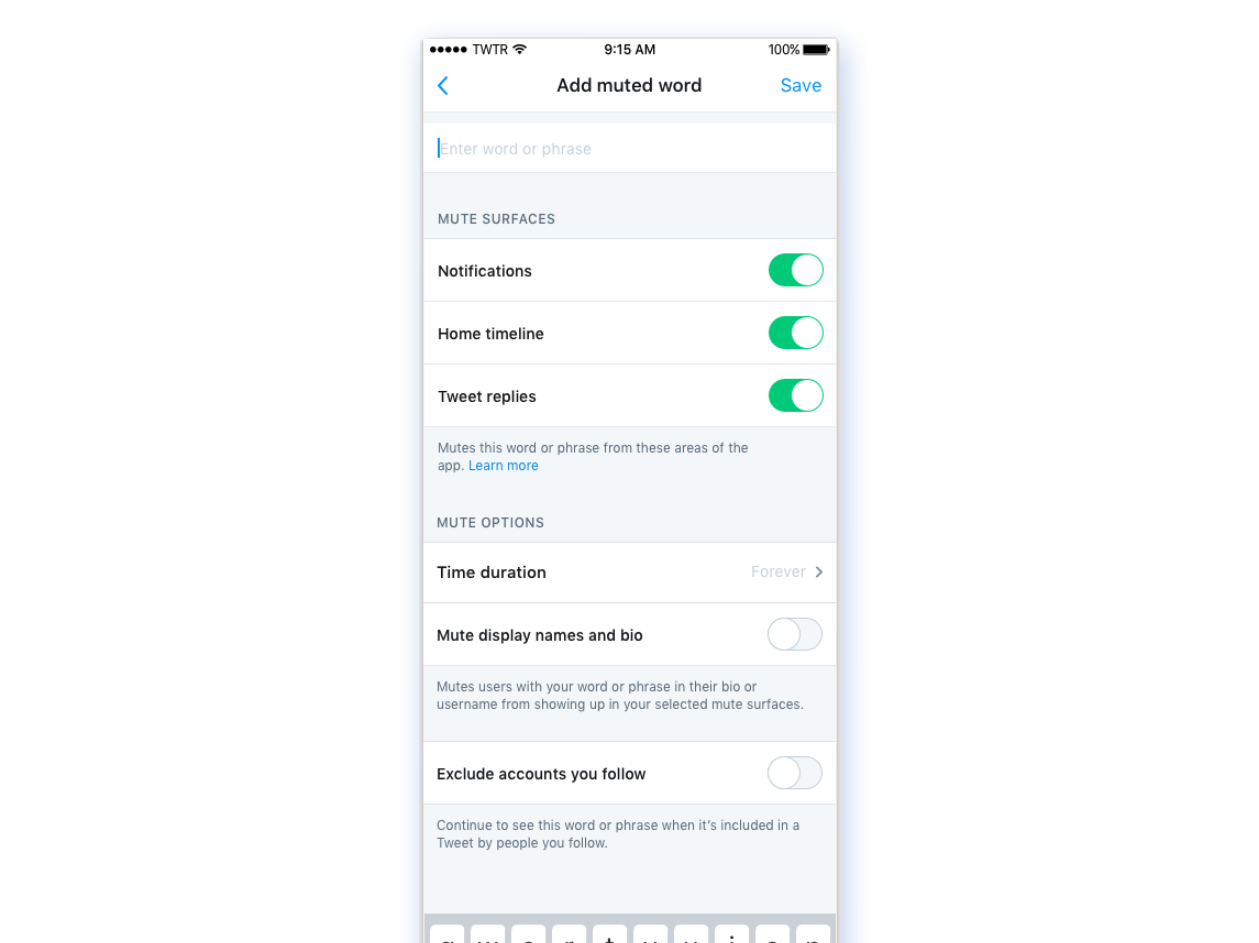 - Customers can mute any @handle, #hashtag, emoji, word, or phrase up to 140 characters