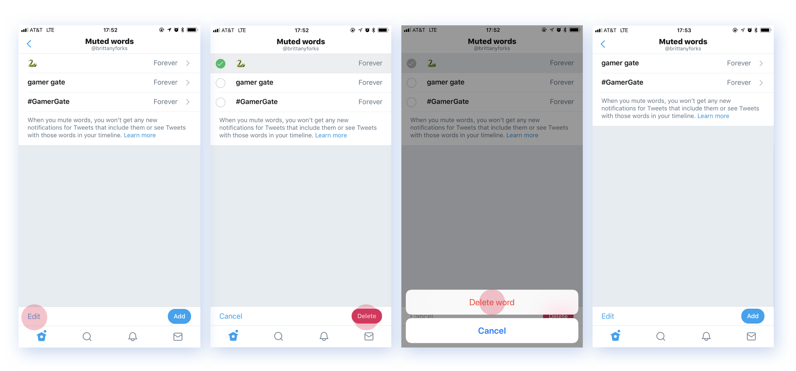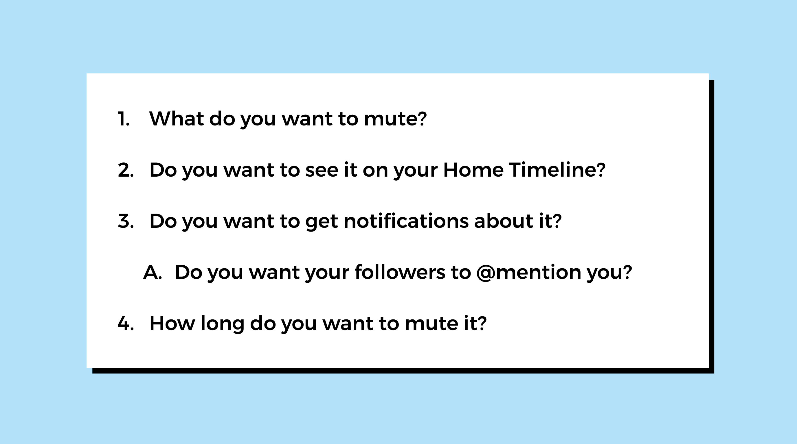 - Do you want to see it on your Notifications tab? With V1 we muted every @mention of the muted word whether you followed the mentioner or not. Research told us this was preventing uptake of the feature. We decided to give customers an option to let followers @mention them with the muted word.