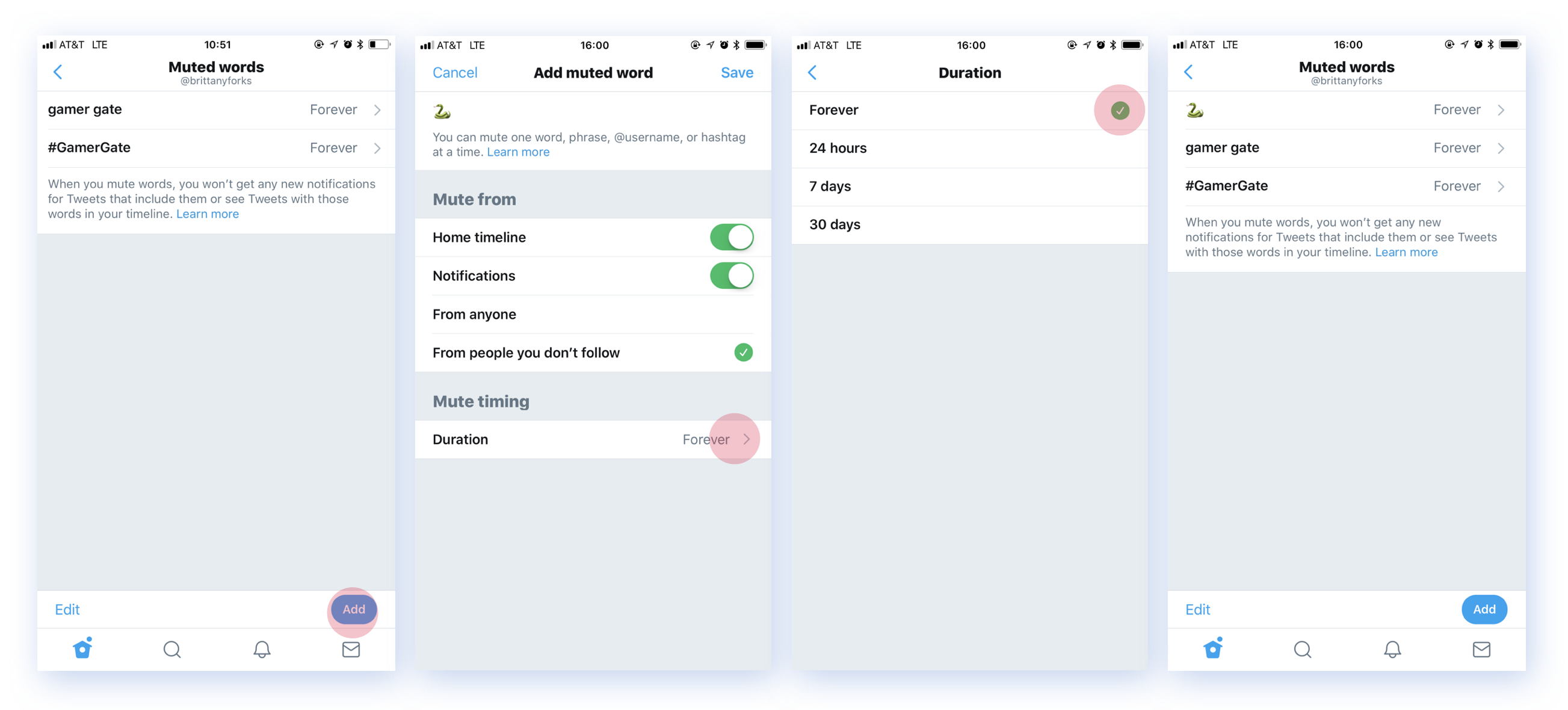 We also wanted to reduce costs for Twitter. It was expensive to check against words that had been intended to be used for a short period of time. For example if you muted Super Bowl, you wouldn’t get a lot of matches for most of the year, but Twitter would still be checking every Tweet in your timeline for Super Bowl. To solve for this, we decided to add timed durations per each word.